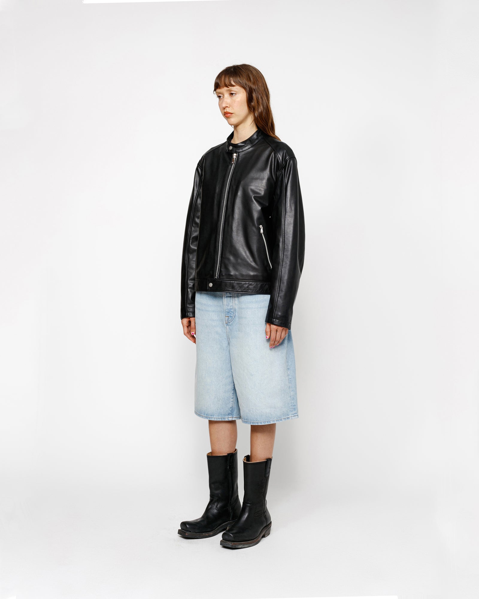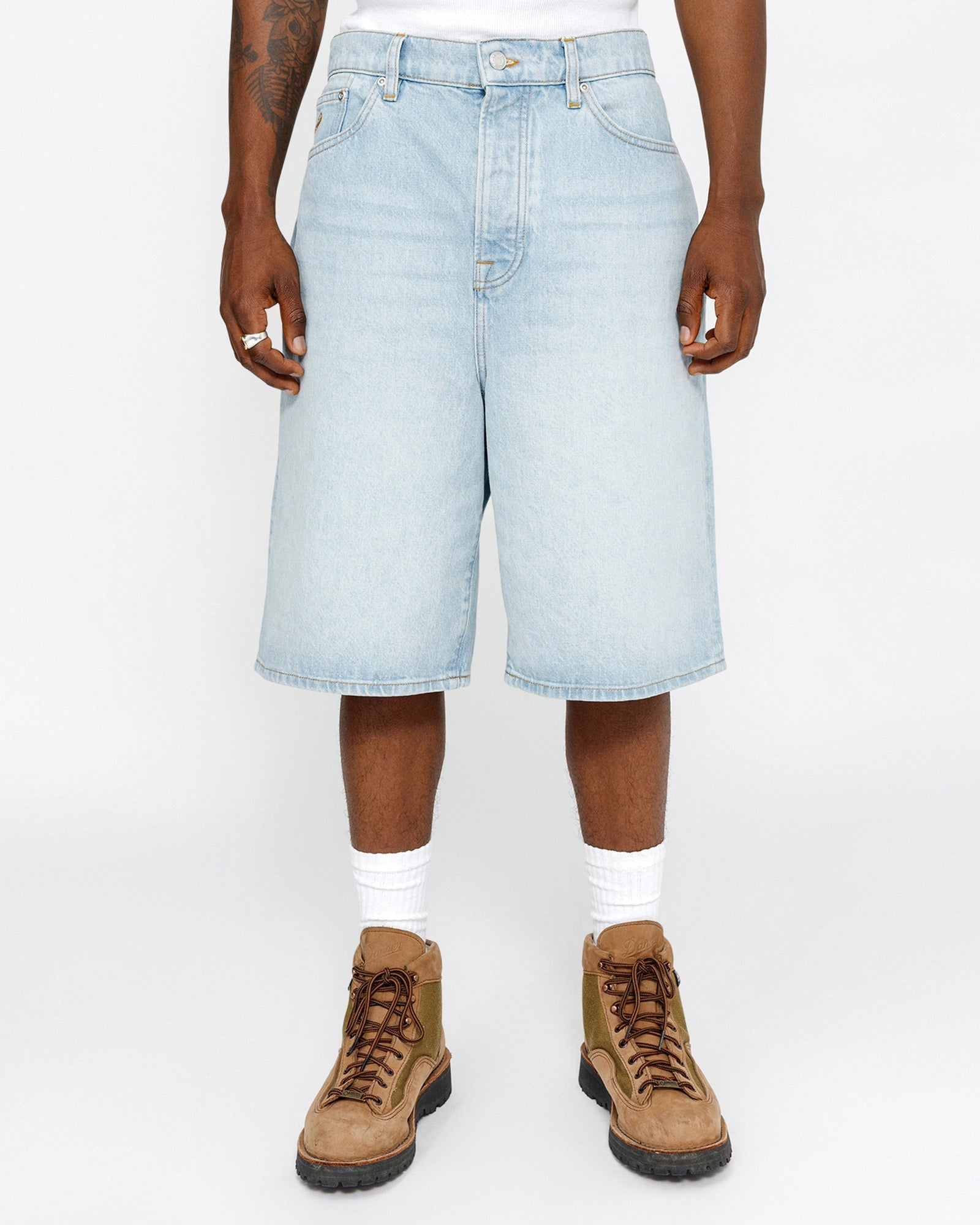Baggy short in 14.5oz cotton denim. Oversized waist with a relaxed rise and roomy cut. Features branded nickel shank hardware and a suede logo patch. Size down for a true-to-size fit in the waist, or order your normal size for a baggier fit.