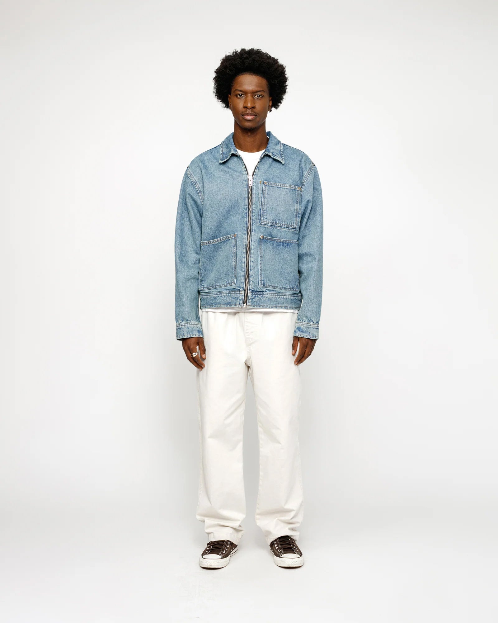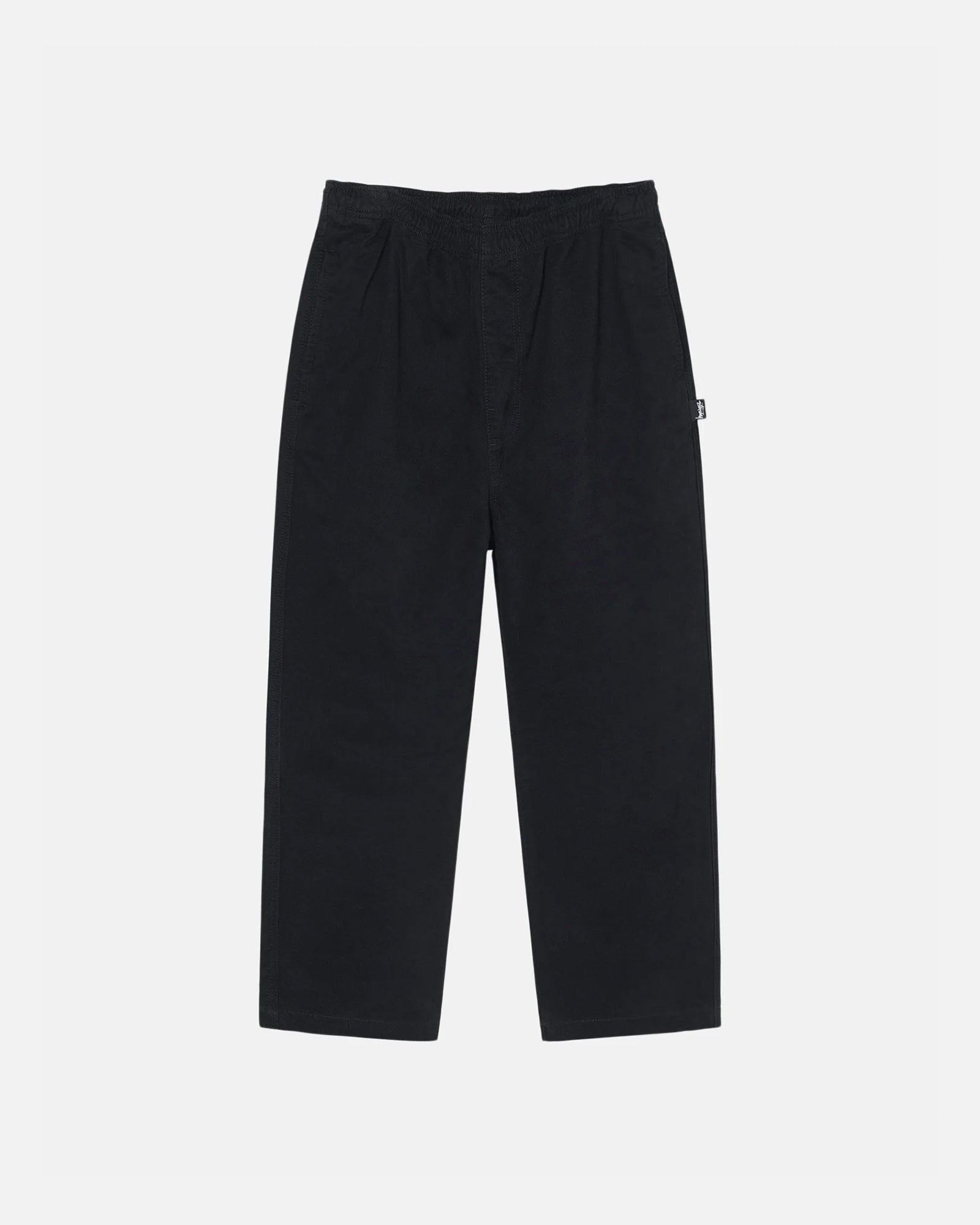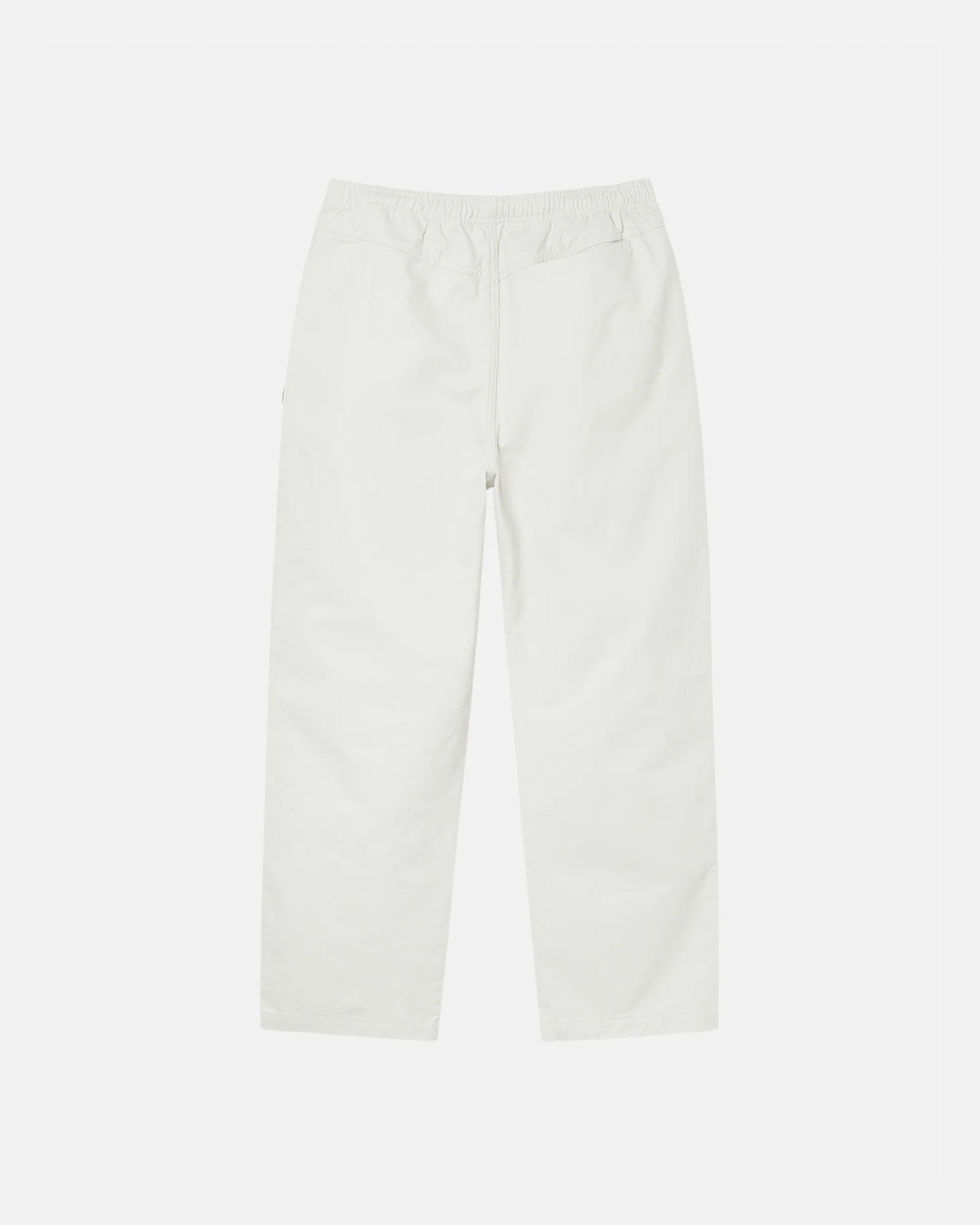 Relaxed fit beach pant in a garment washed brushed cotton twill. Features an elastic waist, side seam pockets and stock label stitched at the side.