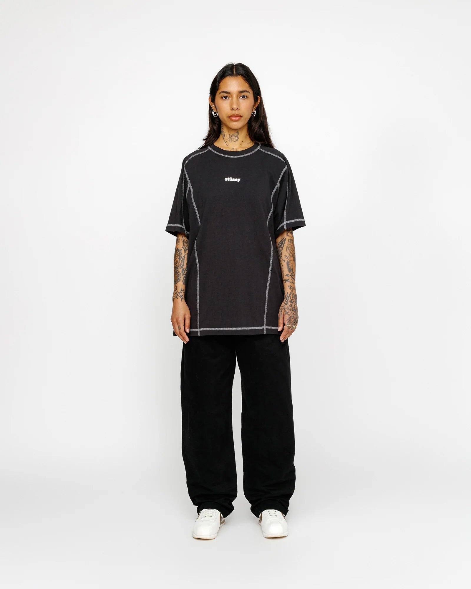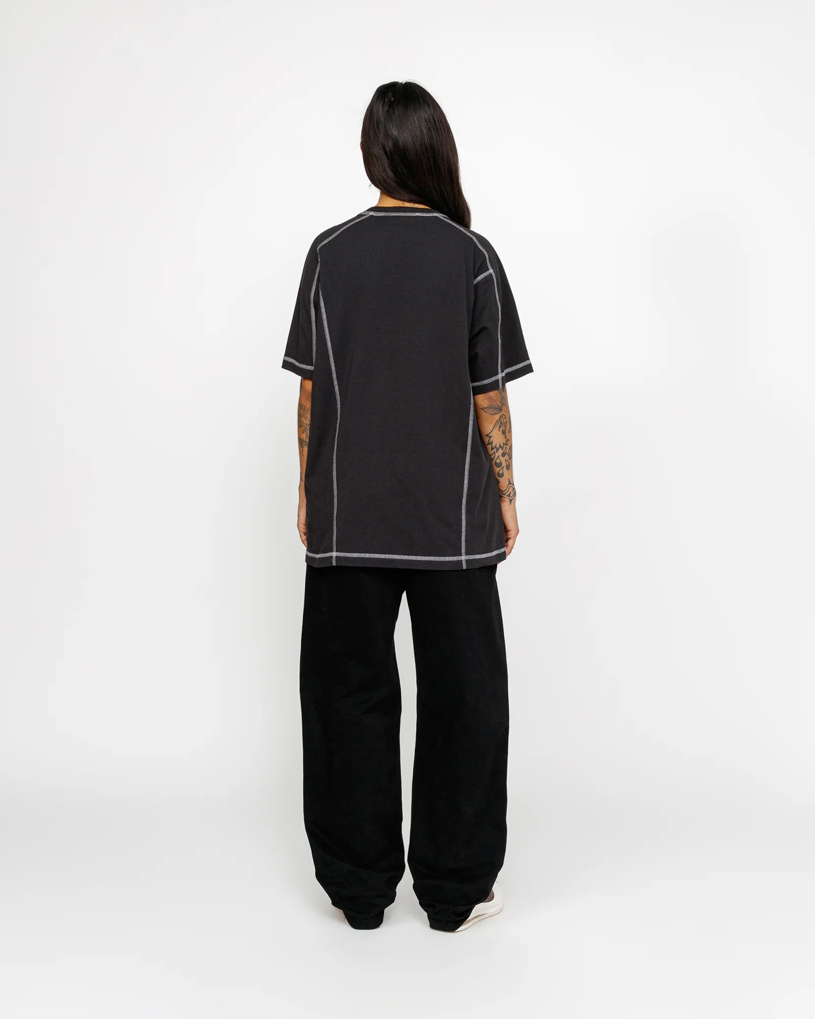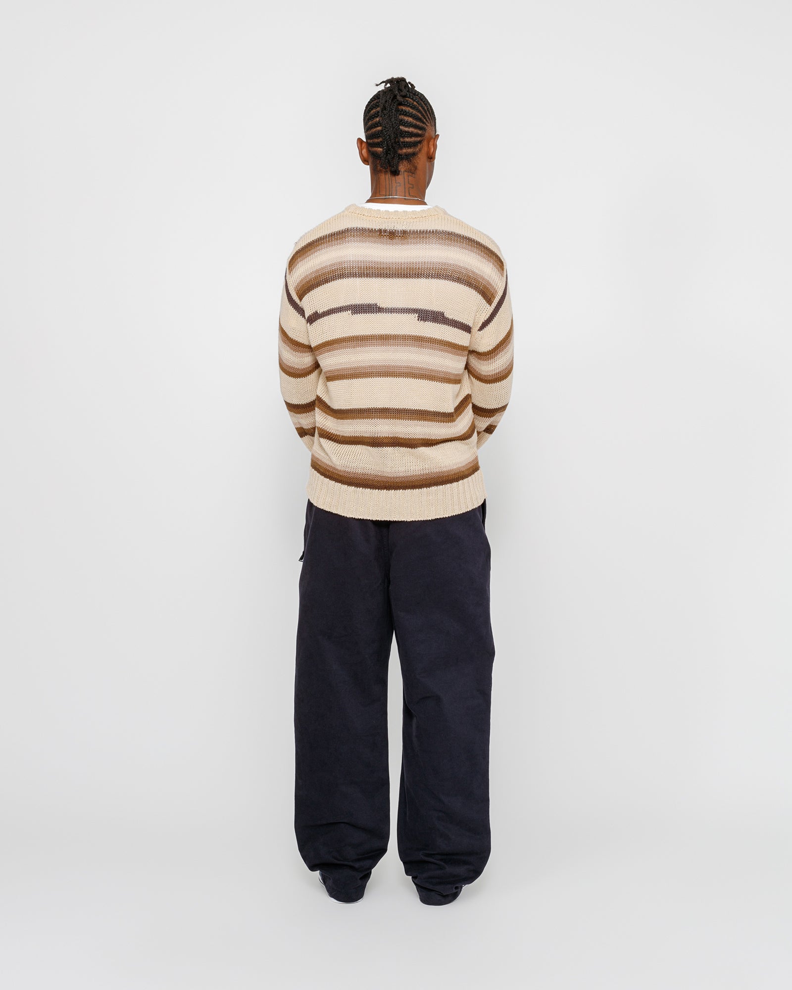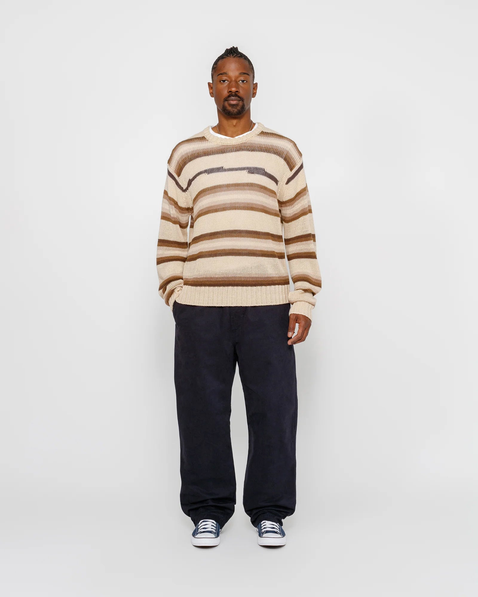 Relaxed fit beach pant in a garment washed brushed cotton twill. Features an elastic waist, side seam pockets and stock label stitched at the side.