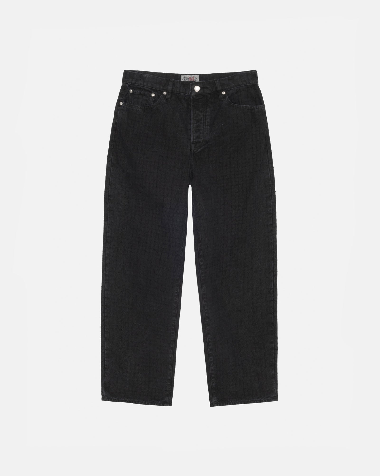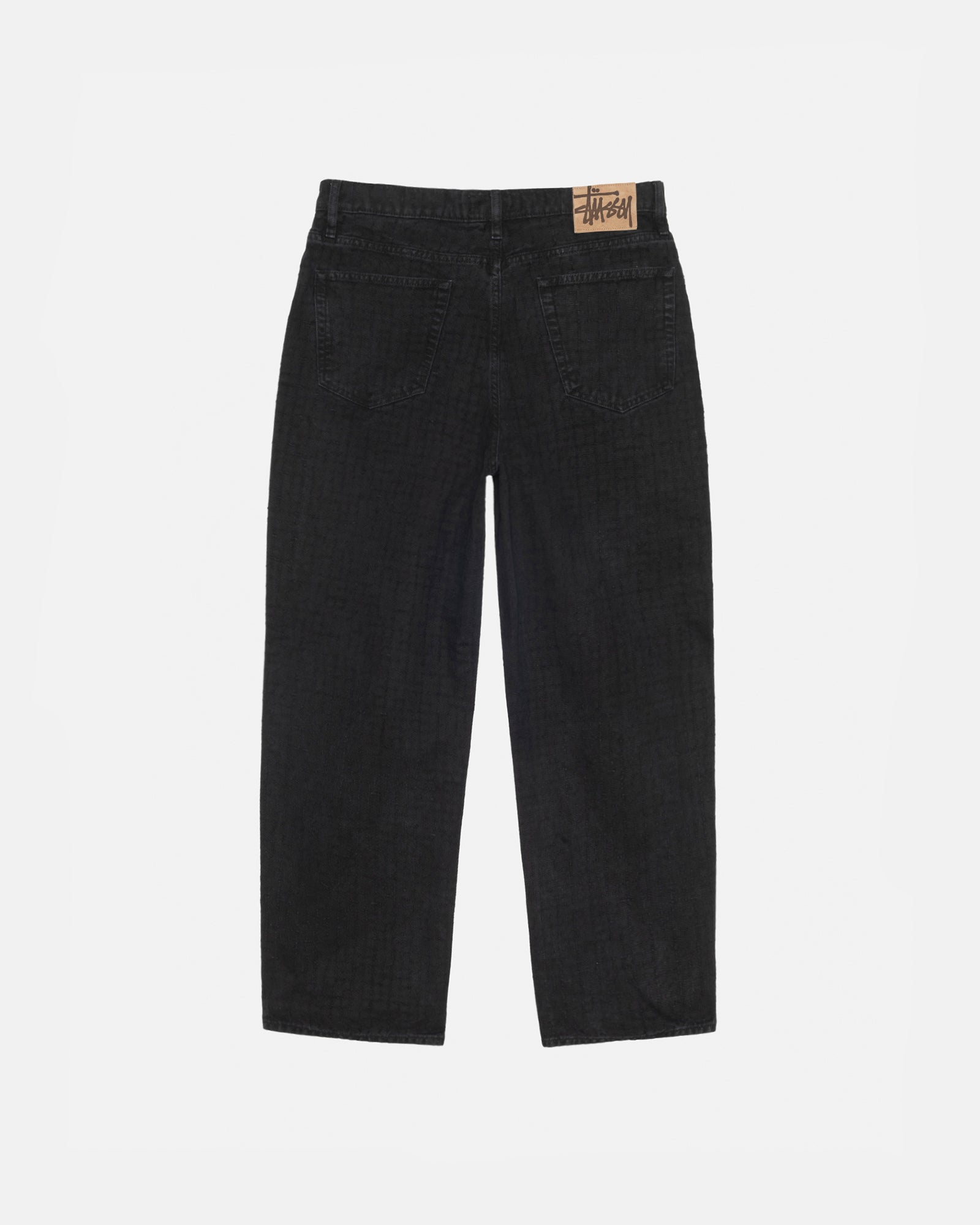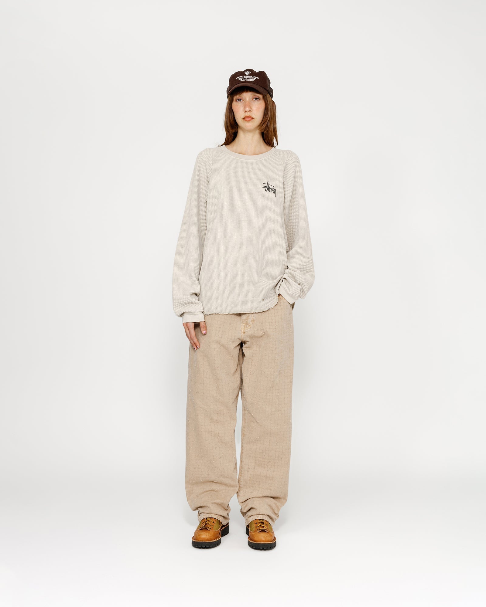 Baggy jean in washed cotton canvas with a needle punch effect. Oversized waist with a relaxed rise and roomy thigh that tapers to the cuff. Features branded nickel shank hardware and a suede logo patch. Size down for a true-to-size fit in the waist, or order your normal size for a baggier fit.