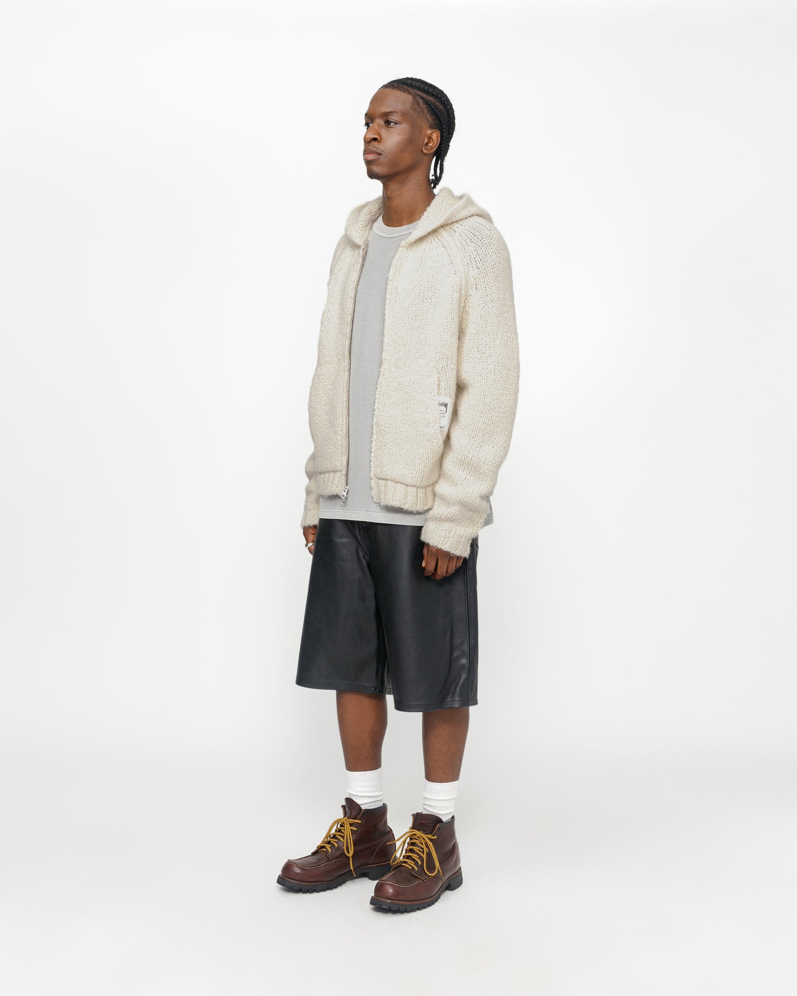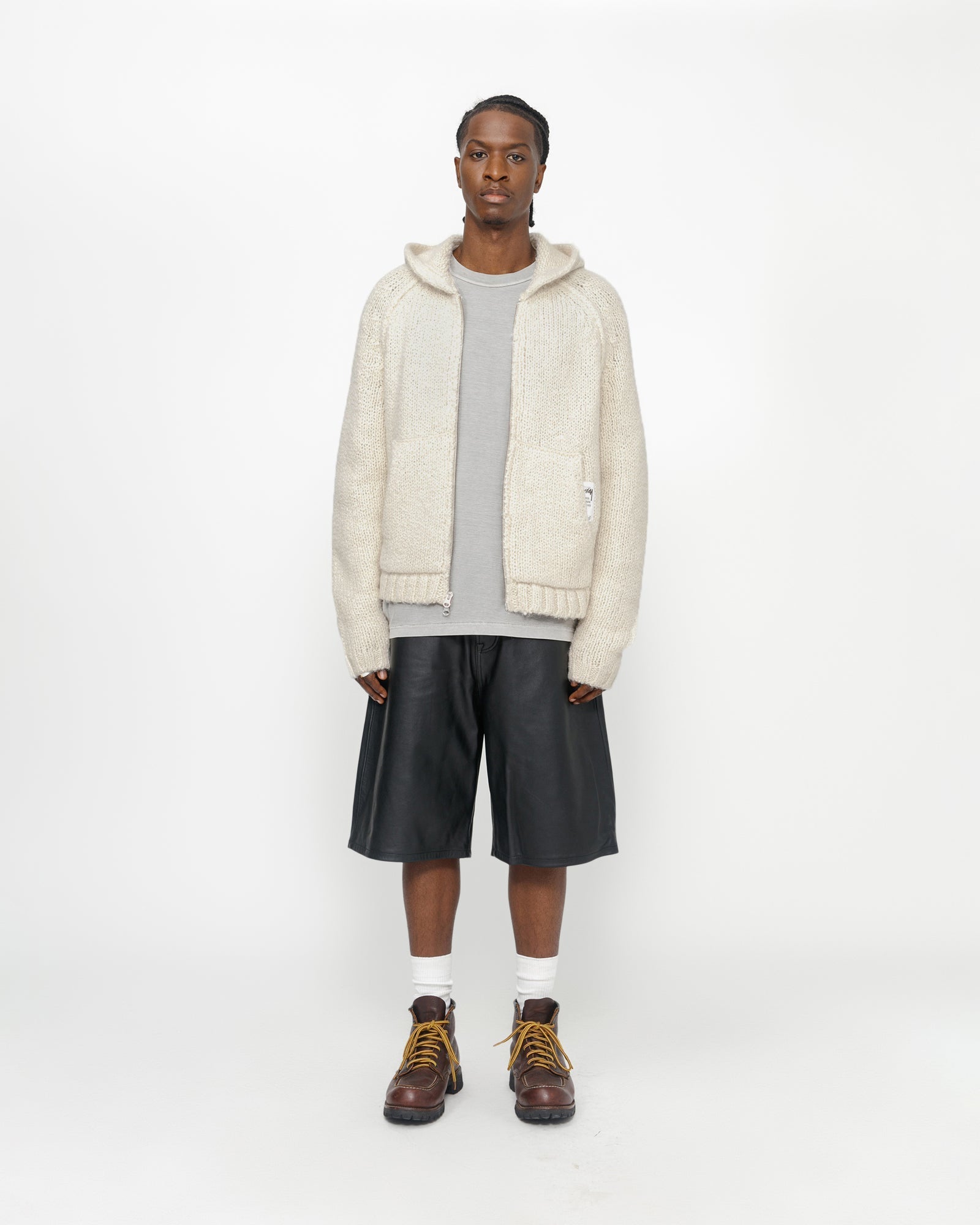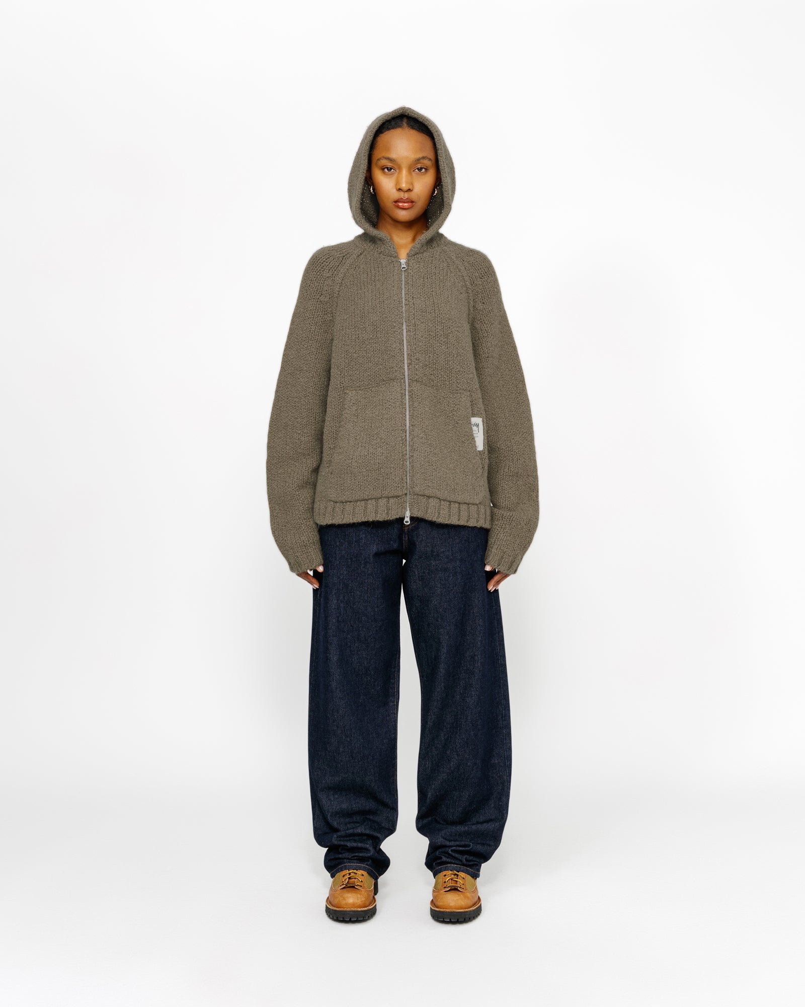 Relaxed hooded sweater with a two-way zip in a chunky alpaca wool knit. label inside the left pocket.