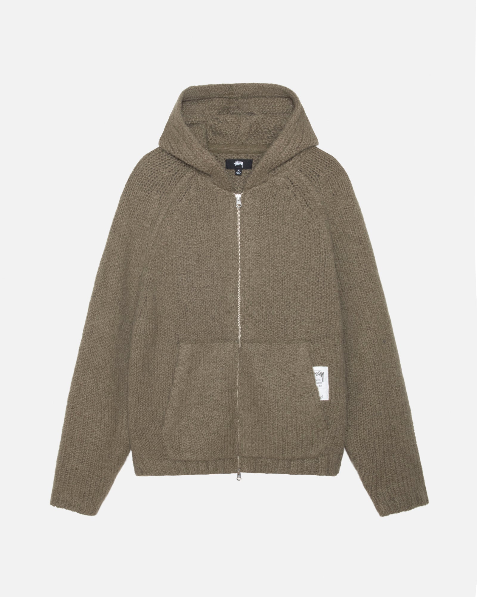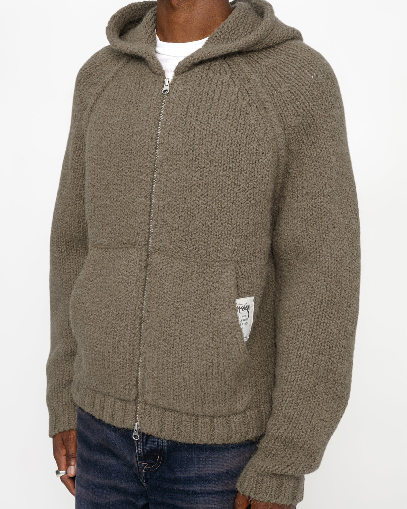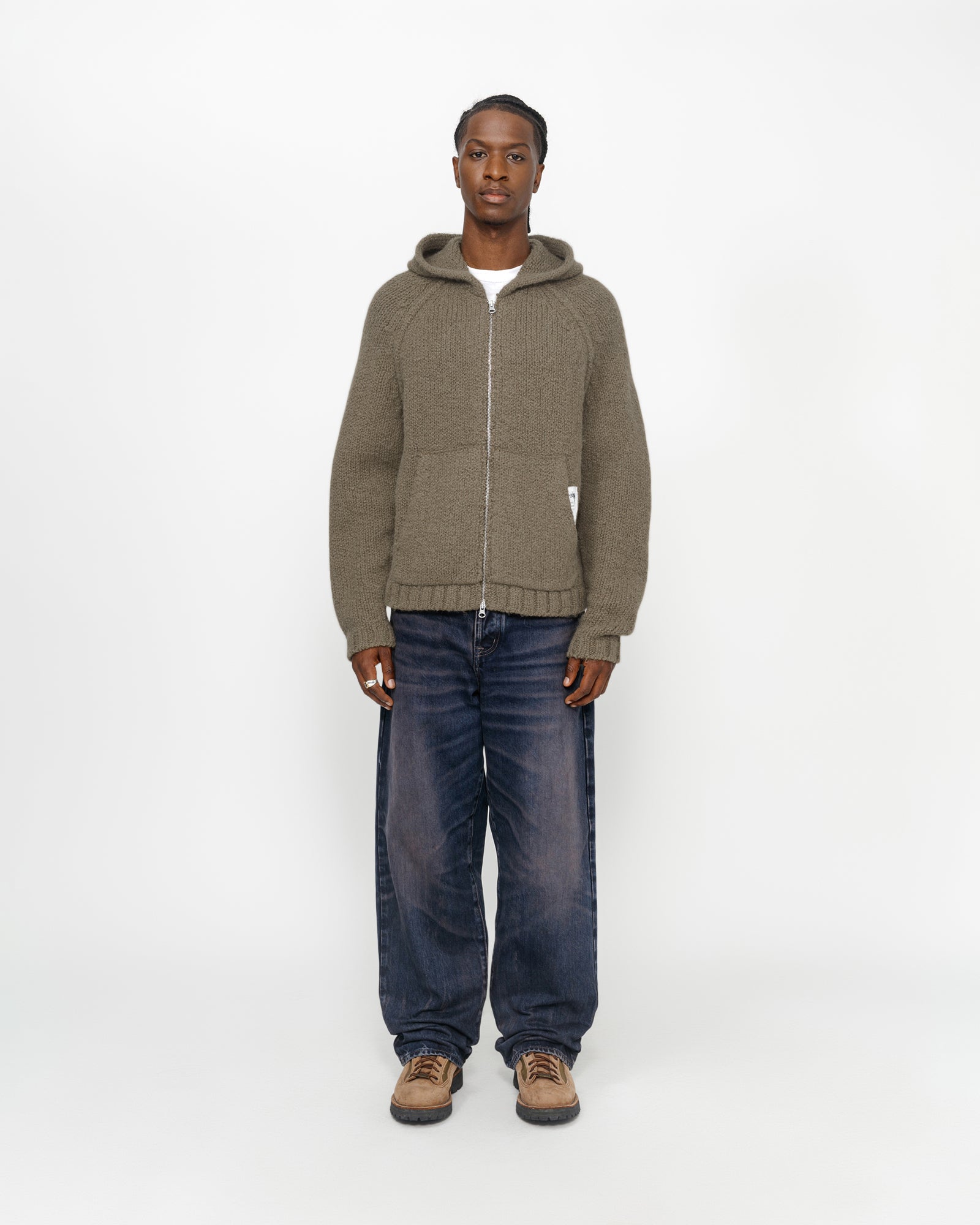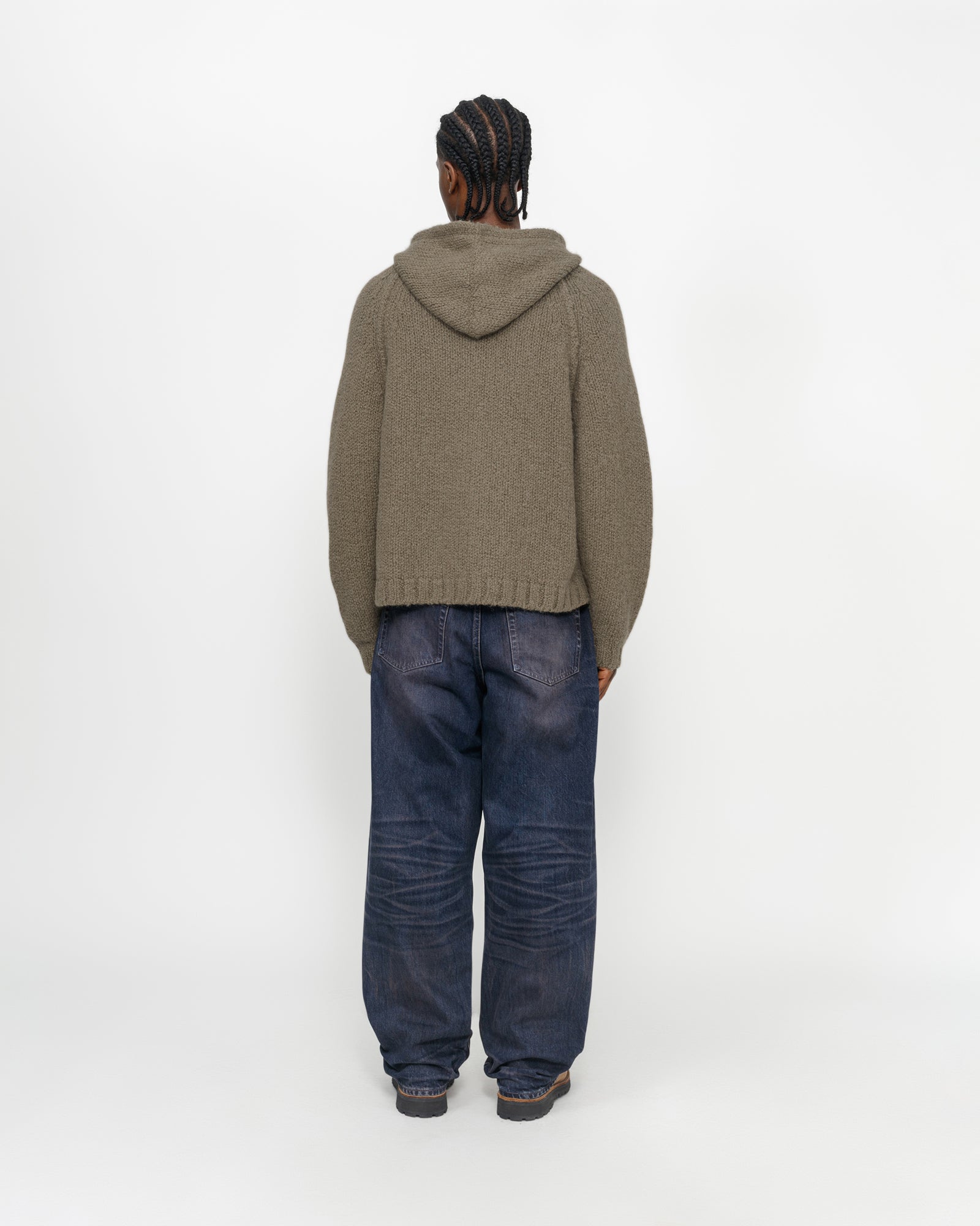 Relaxed hooded sweater with a two-way zip in a chunky alpaca wool knit. label inside the left pocket.