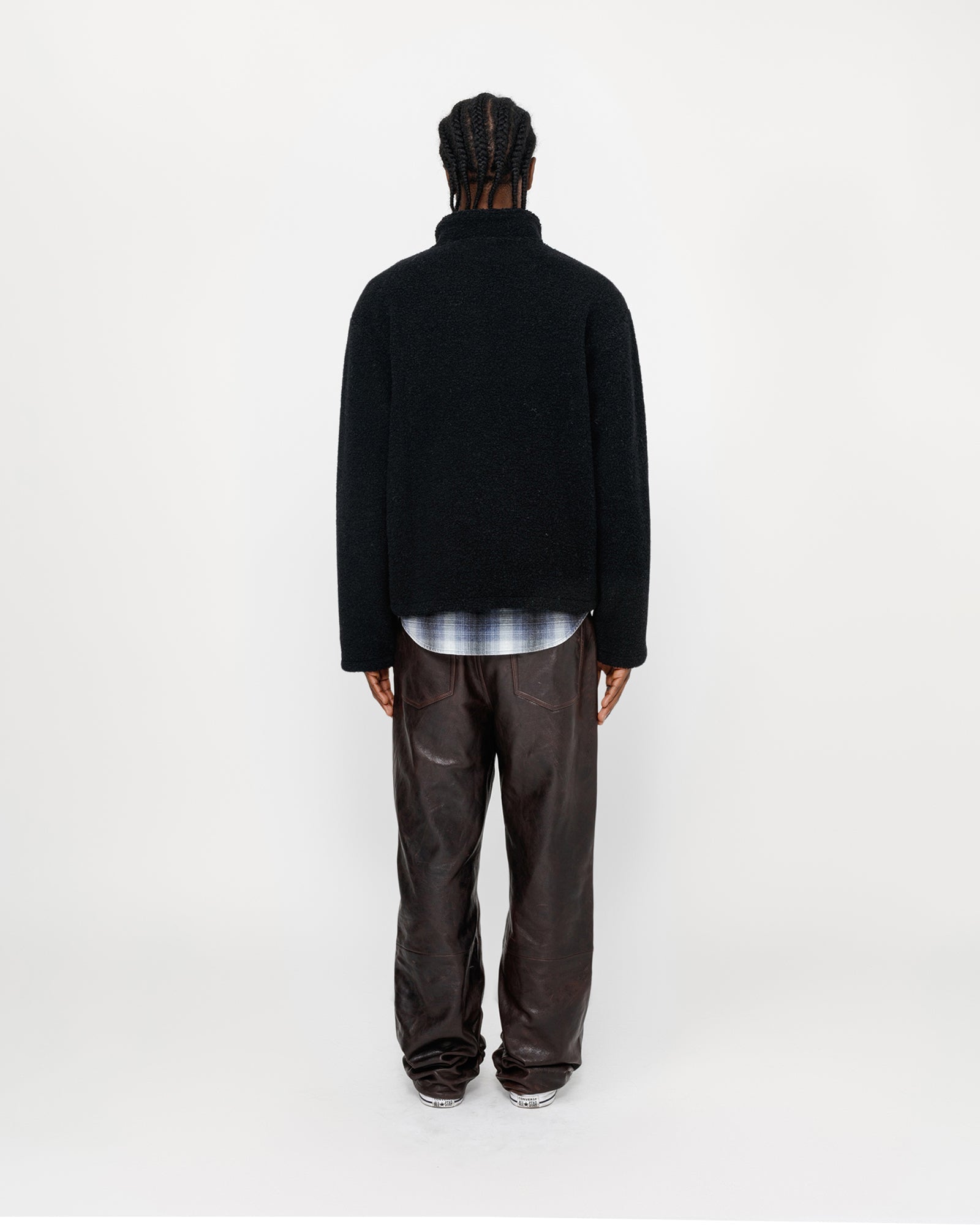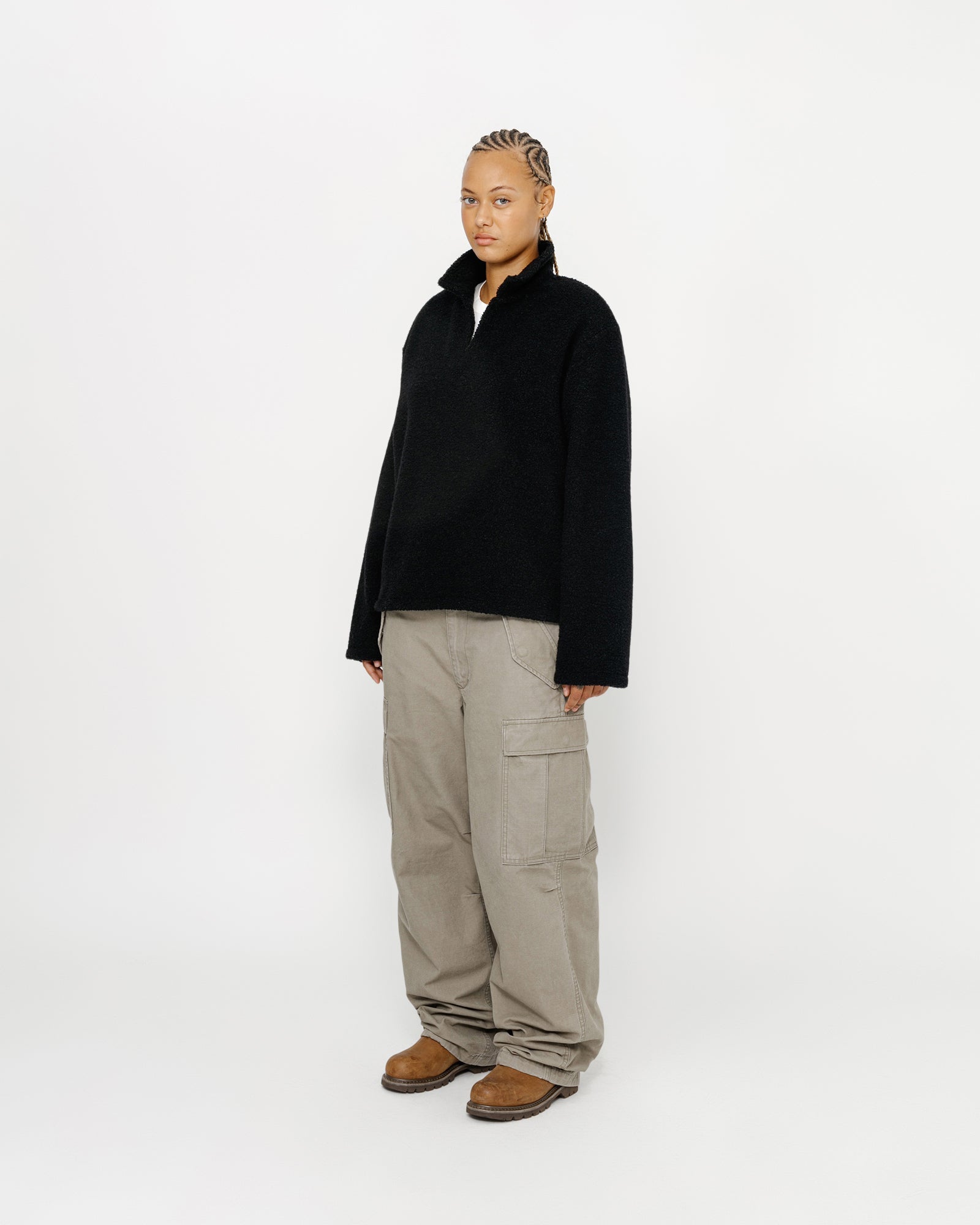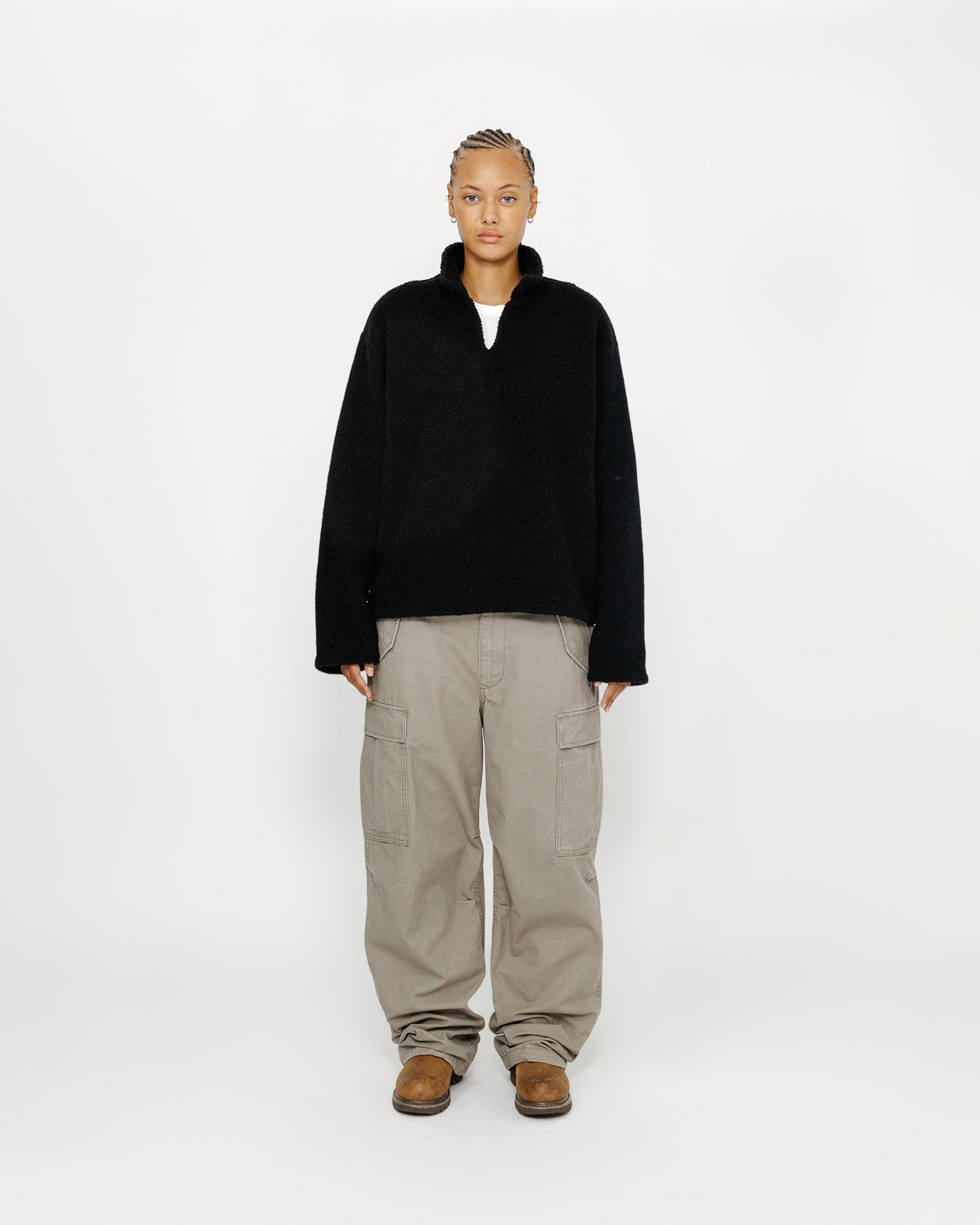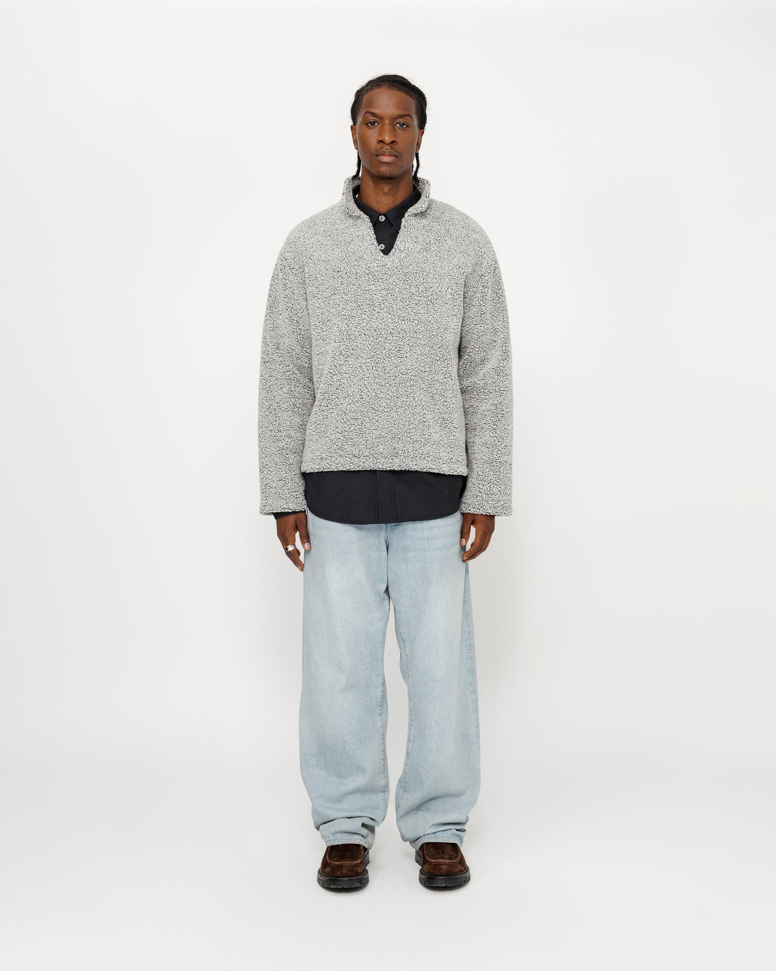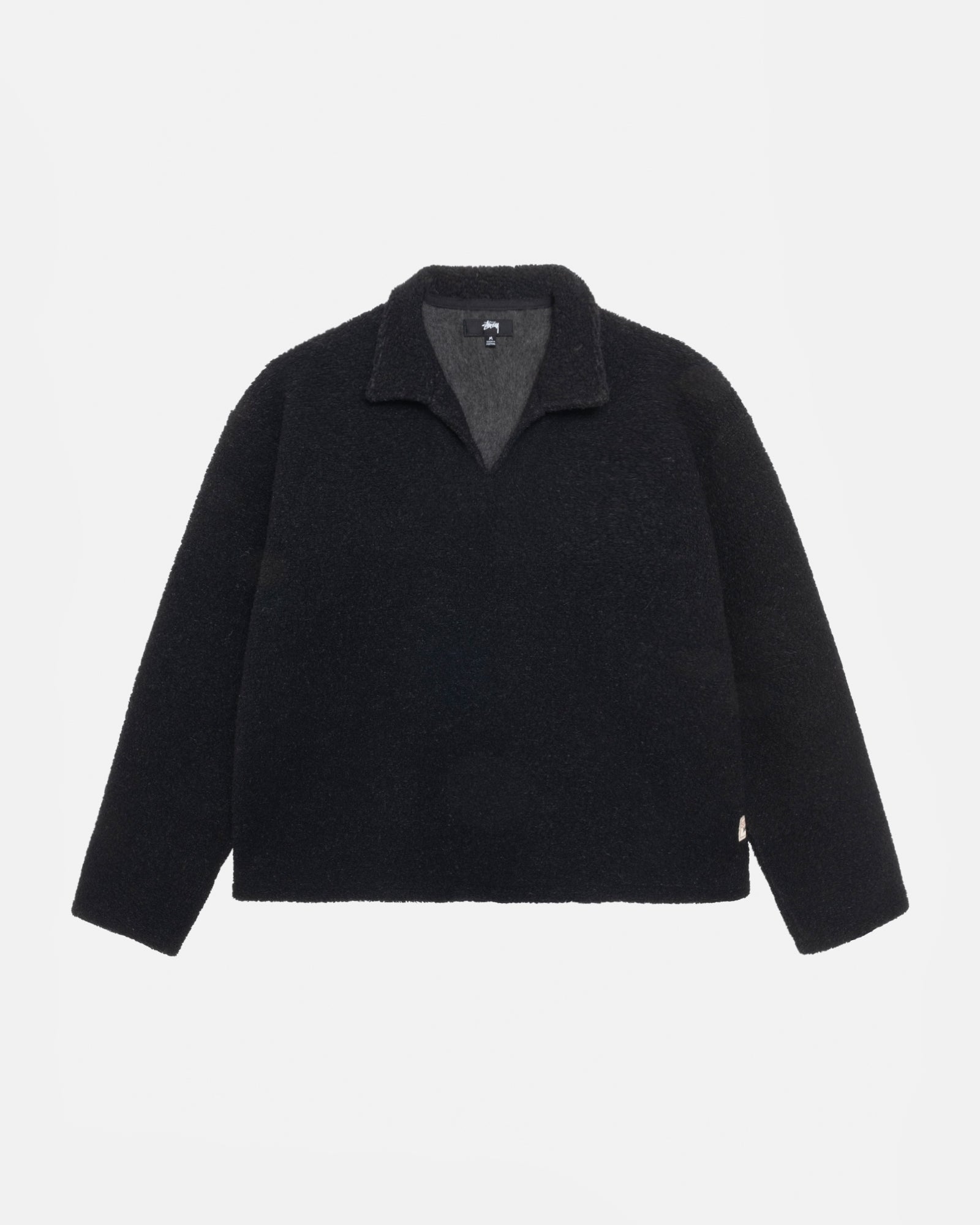 Relaxed fit pullover in a textured wool blend. Features a clean polo collar and workgear label stitched at the side.