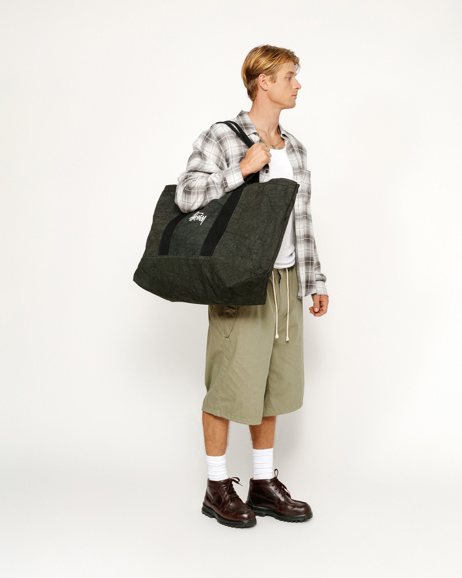 Oversized tote bag in cotton canvas. Features a large central compartment with an interior drop pocket, and two exterior pockets. basic stock logo embroidered at one side.