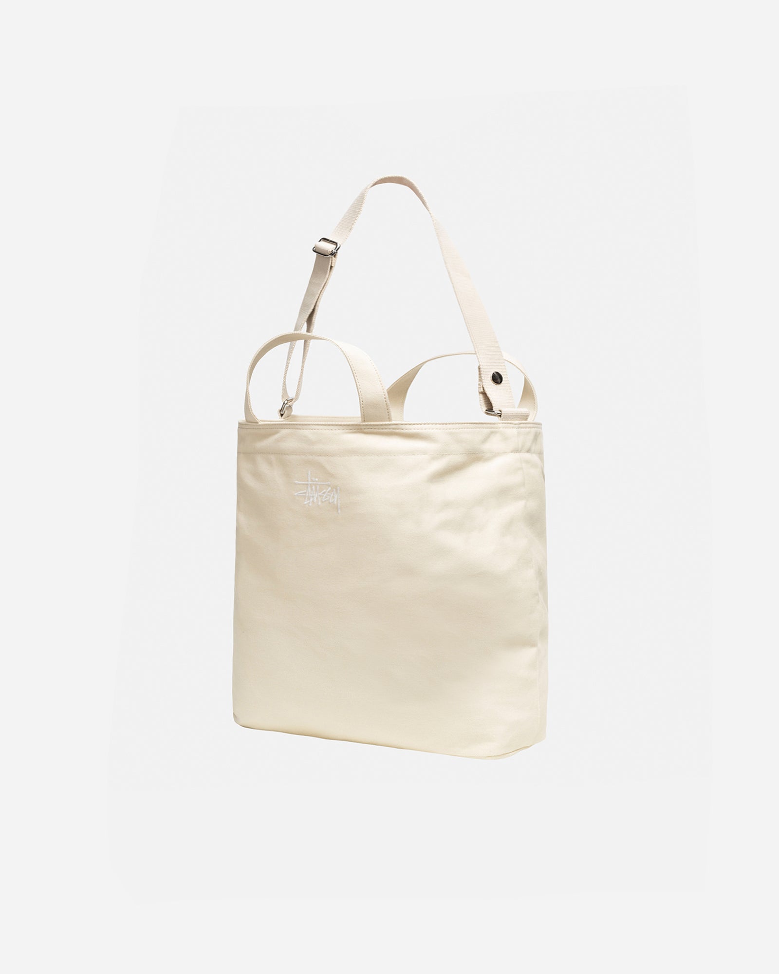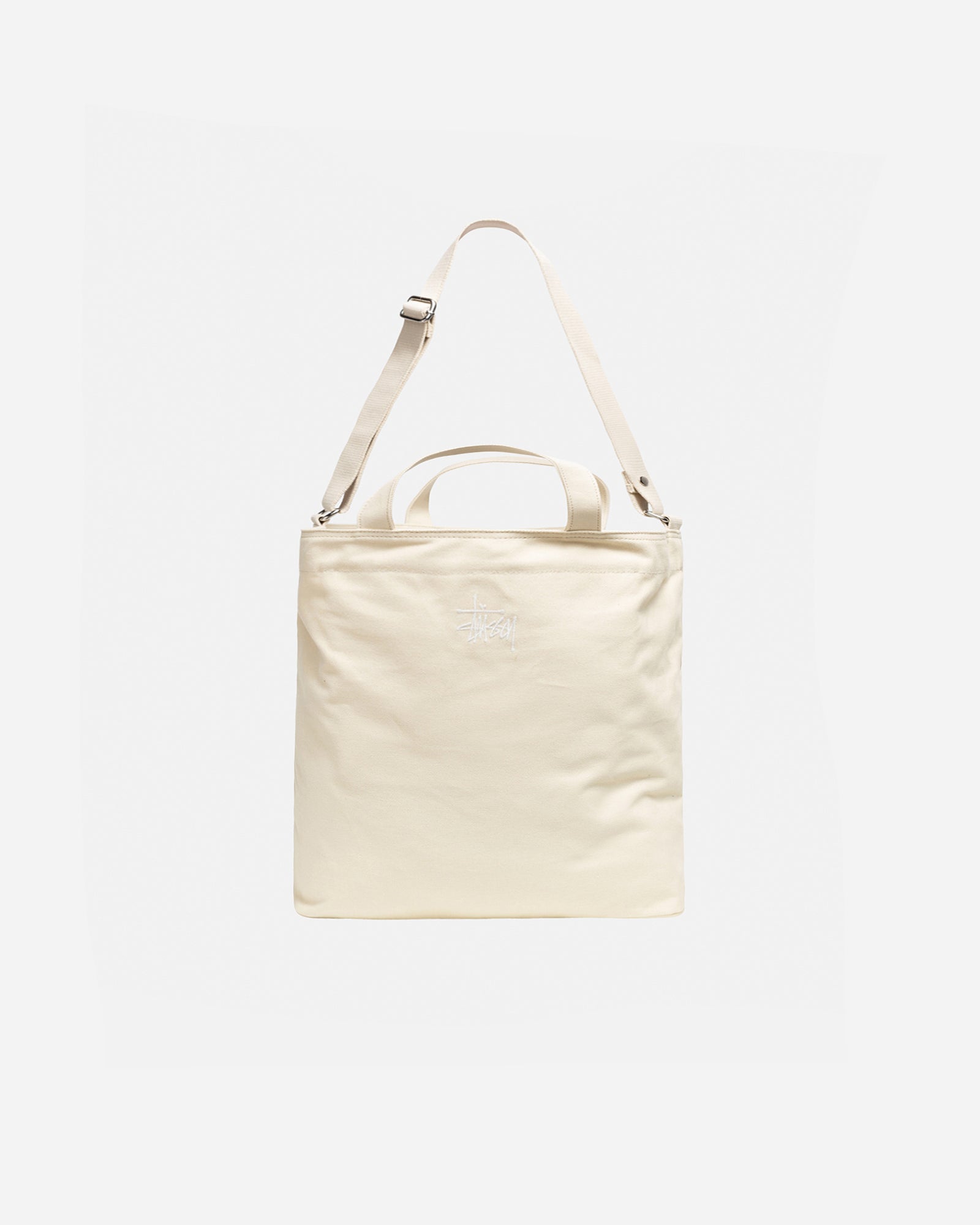 Cotton canvas crossbody bag. Features a hidden snap closure, large interior sleeve and small zipped pocket. basic stock logo embroidered at the front side.