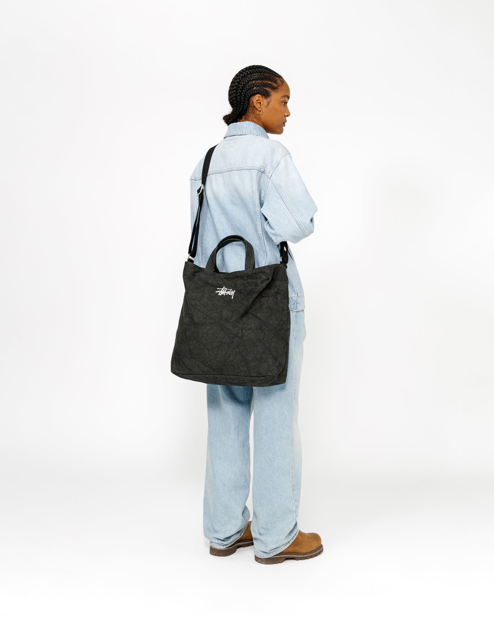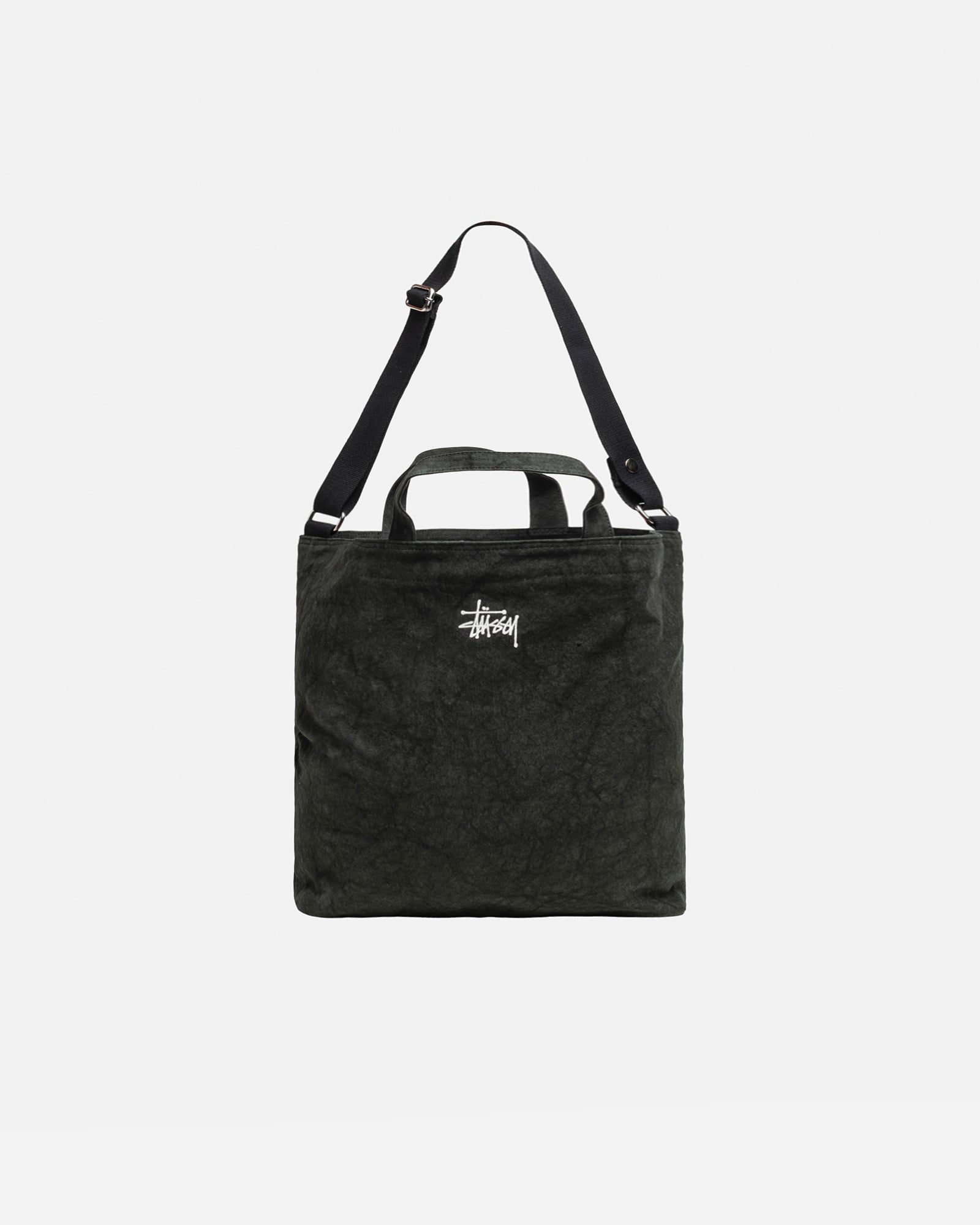 Cotton canvas crossbody bag. Features a hidden snap closure, large interior sleeve and small zipped pocket. basic stock logo embroidered at the front side.