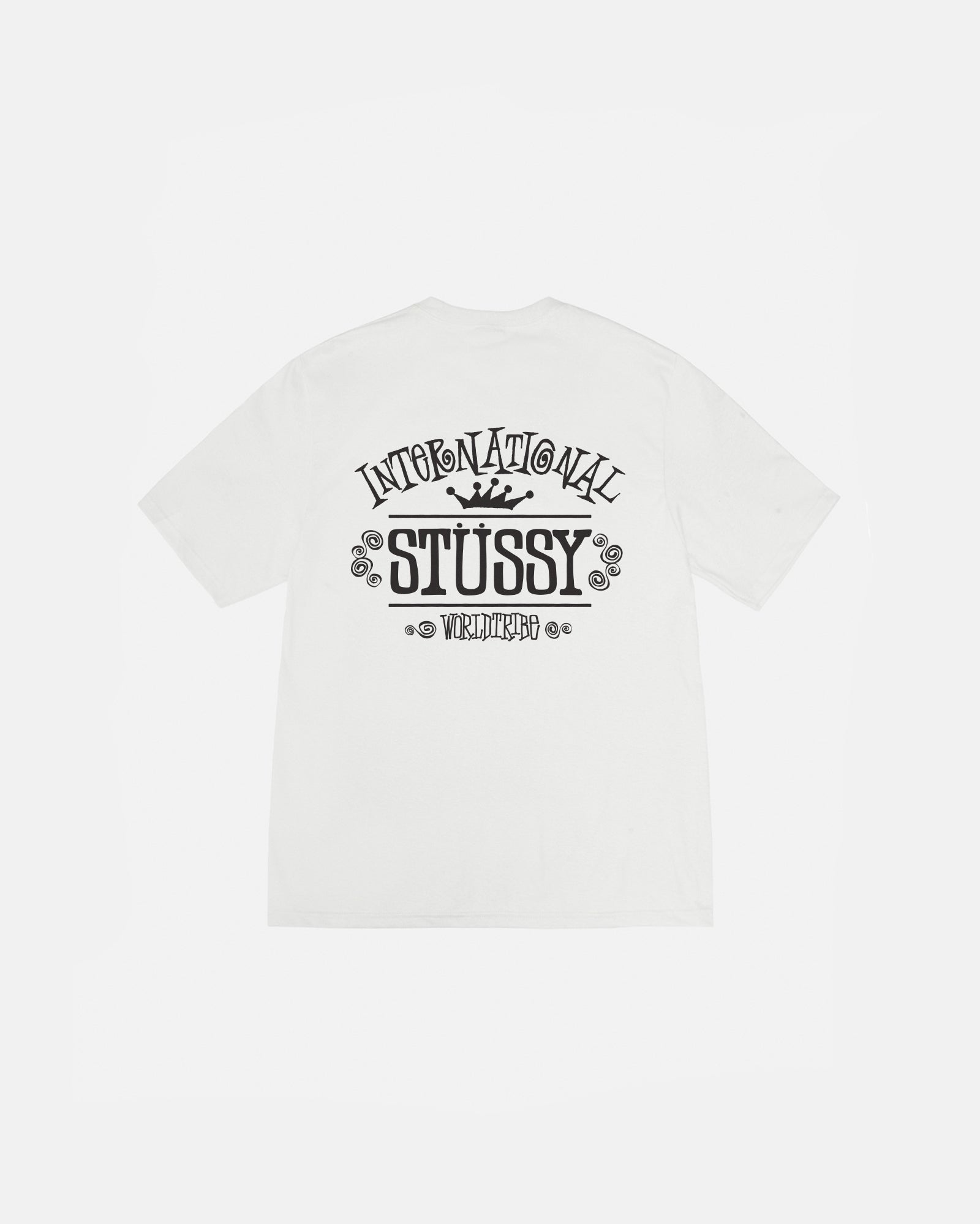 Oversized pigment dyed tee in midweight 6.5oz cotton jersey. Features screenprinted graphics.