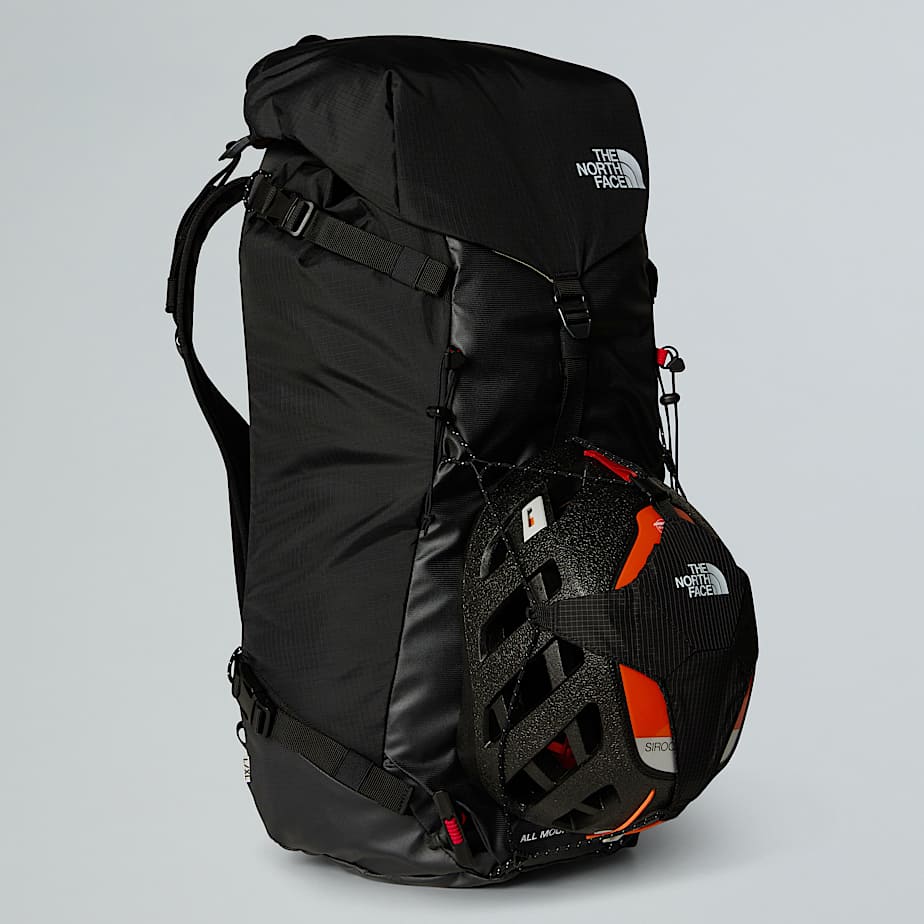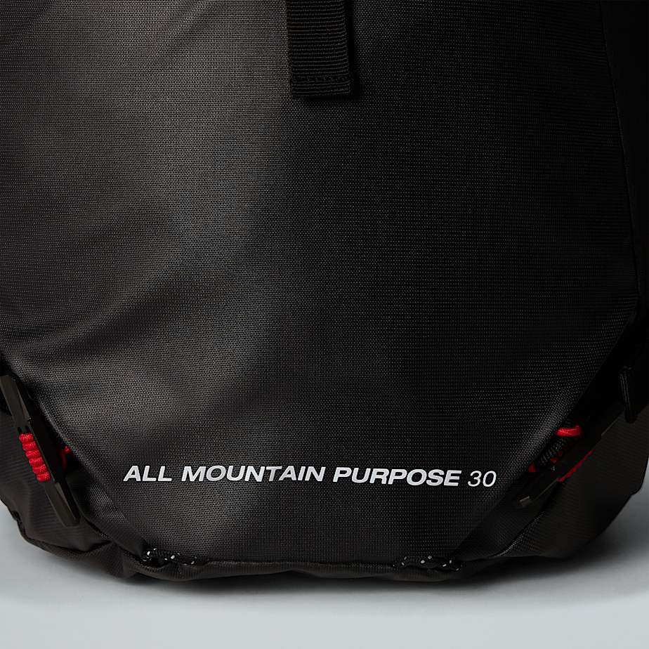 • Designed for alpinists who want versatile support in the backcountry, the All Mountain Purpose 30 provides long-lasting durability on high-alpine expeditions. The roomy 30-litre capacity, durable nylon shell and exterior webbing make it easy to stash and lash gear as you go. There's a stowable hip belt for compatibility with a climbing harness. The front features a handy helmet attachment, while side access zips give quick and easy access to your mountain essentials. Plus, the pack has stowable head lockers to keep ice axes in place. Tighten up the load using the upper and lower compression straps, and use the A-frame to carry your skis on the way up.