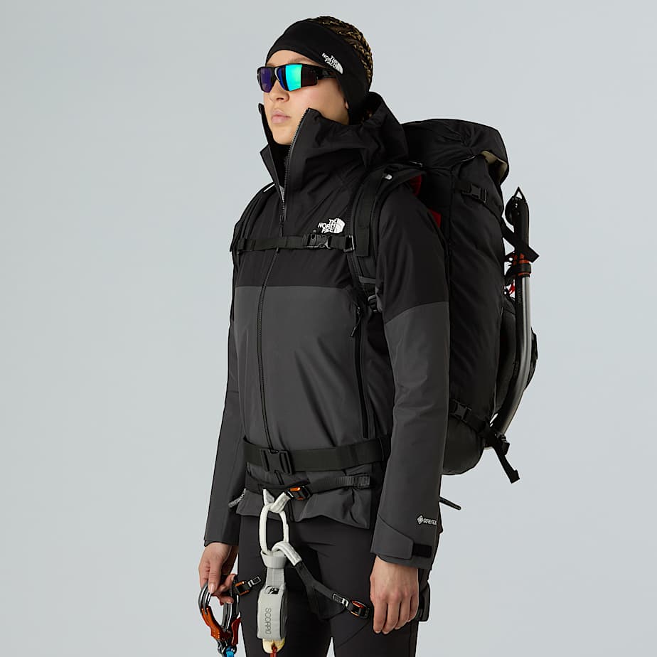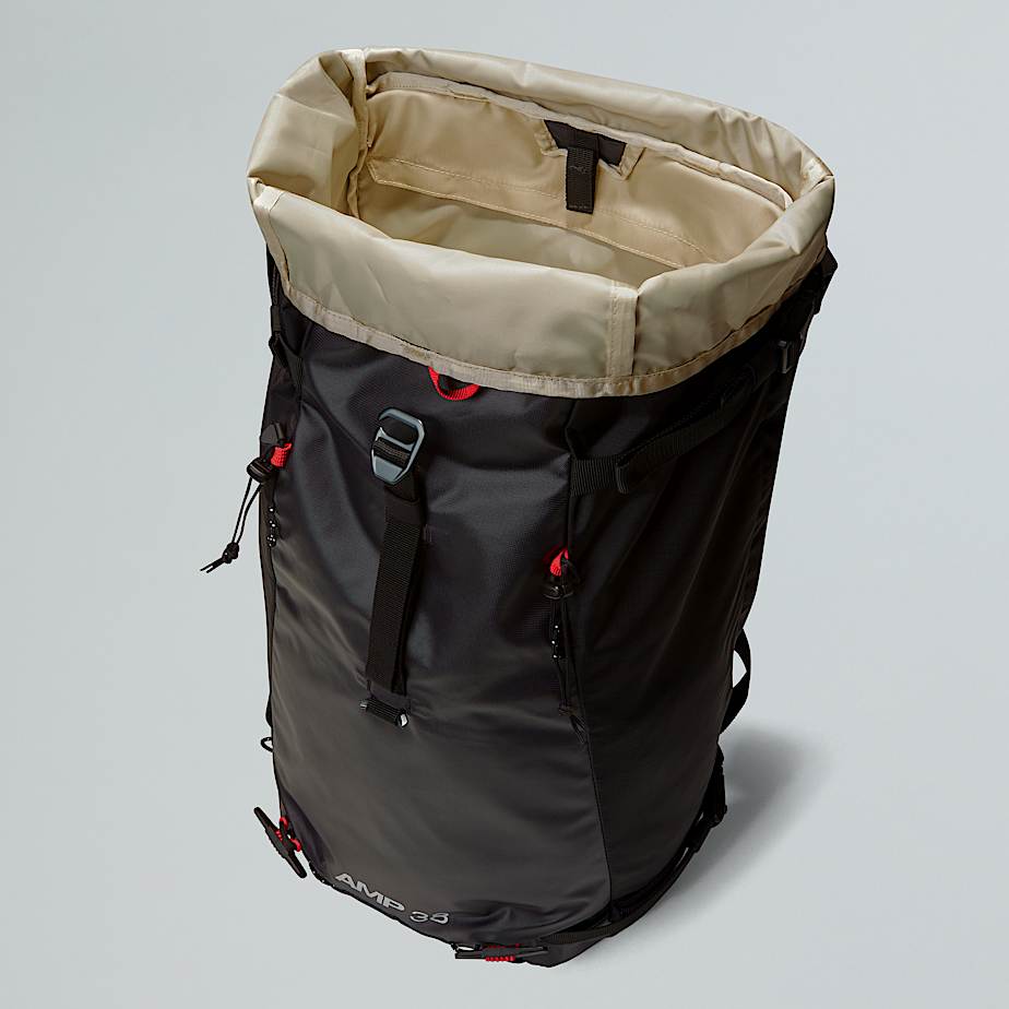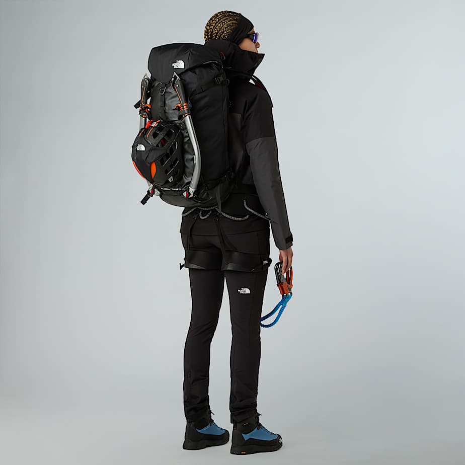 • Designed for alpinists who want versatile support in the backcountry, the All Mountain Purpose 38 provides long-lasting durability on high-alpine expeditions. The roomy capacity, durable nylon shell and exterior webbing make it easy to stash and lash gear as you go. There's a stowable hip belt for compatibility with a climbing harness. The front features a handy helmet attachment, while side access zips give quick and easy access to your mountain essentials. Plus, the pack has stowable head lockers to keep ice axes in place. Tighten up the load using the upper and lower compression straps, and use the A-frame to carry your skis on the way up.