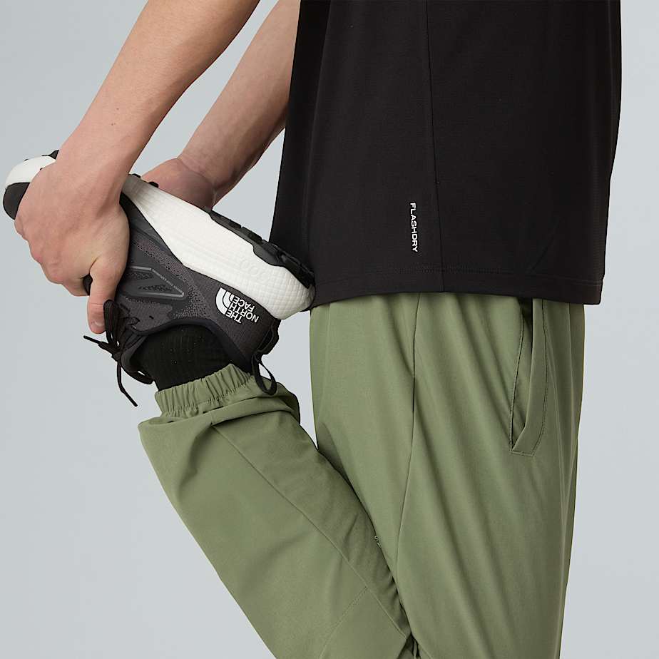 • Wherever you train, do it in the Mountain Athletics 24/7 T-Shirt. Made from recycled materials and engineered with FlashDry technology, the fabric acts like a second skin to draw moisture to the surface where it rapidly evaporates. The technology also resists saturation, so even if you work up a hefty sweat, this tee will dry lightning fast. It's finished with a bold Mountain Athletics graphic on the chest and sleeve.