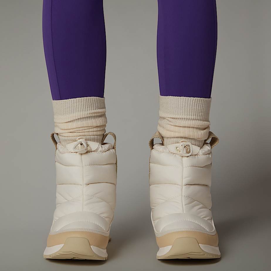 • The ThermoBall Pull-On Waterproof Boots will help keep explorers outside all winter long. The Thermoball insulation and cosy fleece lining will keep your feet toasty even when it's damp. Then there's the waterproof DryVent upper that’ll help keep snow and rain out. To top it all off, grippy rubber outsoles will help you stay on your feet even on slippery ground.