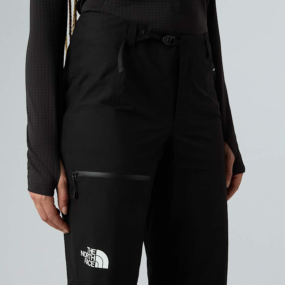 • Designed for extreme weather conditions, the Summit Torre Egger FUTURELIGHT Lightweight Trousers defy the challenges of high alpine climbing. Made from ultra-light three-layer waterproof fabric, these alpine trousers have internal kickpatches, an integrated belt and internal parachute-cord attachment loops at the leg openings for a seamless fit with a variety of mountaineering boots. And if you like carrying essential gear close to hand, there are roomy, harness-compatible thigh pockets.
