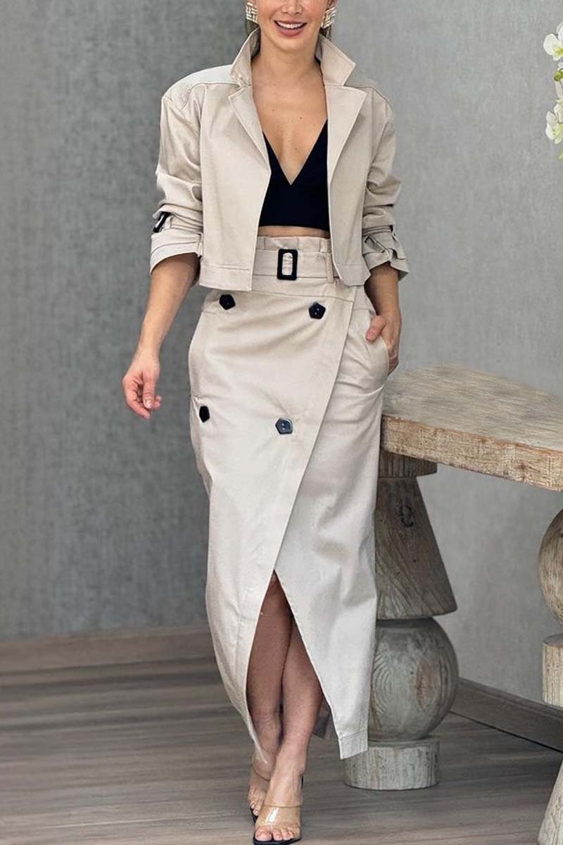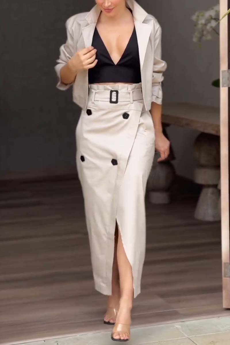 Women's Versatile Casual Work Wear Temperament Button Belt Skirt Set